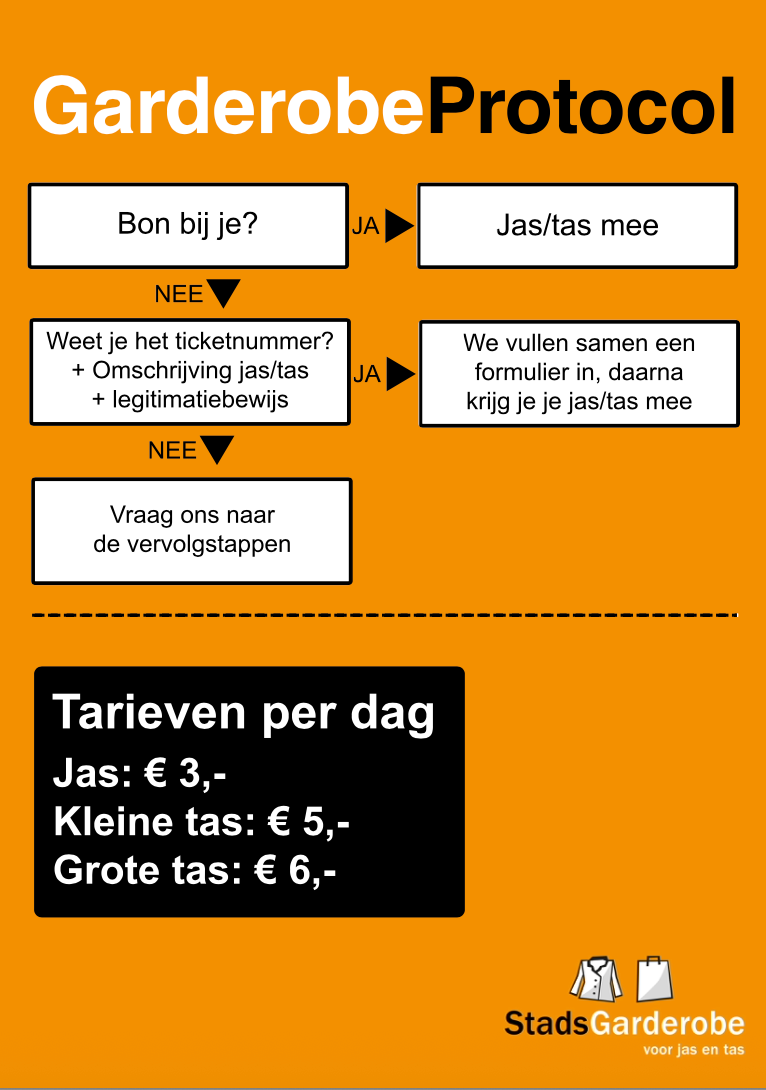 Weet je het nummer nog, heb je een legitimatiebewijs (paspoort, rijbewijs of identiteitskaart) bij je en kun je omschrijven hoe je jas of tas eruit ziet? Dan krijg je het item mee. Zie hiervoor ook ons protocol. Medewerkers kunnen bij twijfel ervoor kiezen het artikel niet af te geven, dit om de veiligheid te waarborgen.
